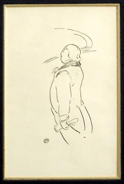 | "Sketch Of Oscar Wilde" Original Line Etching c1895 By Henri de Toulouse-Lautrec (French 1864-1901) Signed in the plate "TL". 6" x 9" Professionally Matted and Glass-Framed 11" x 14" |